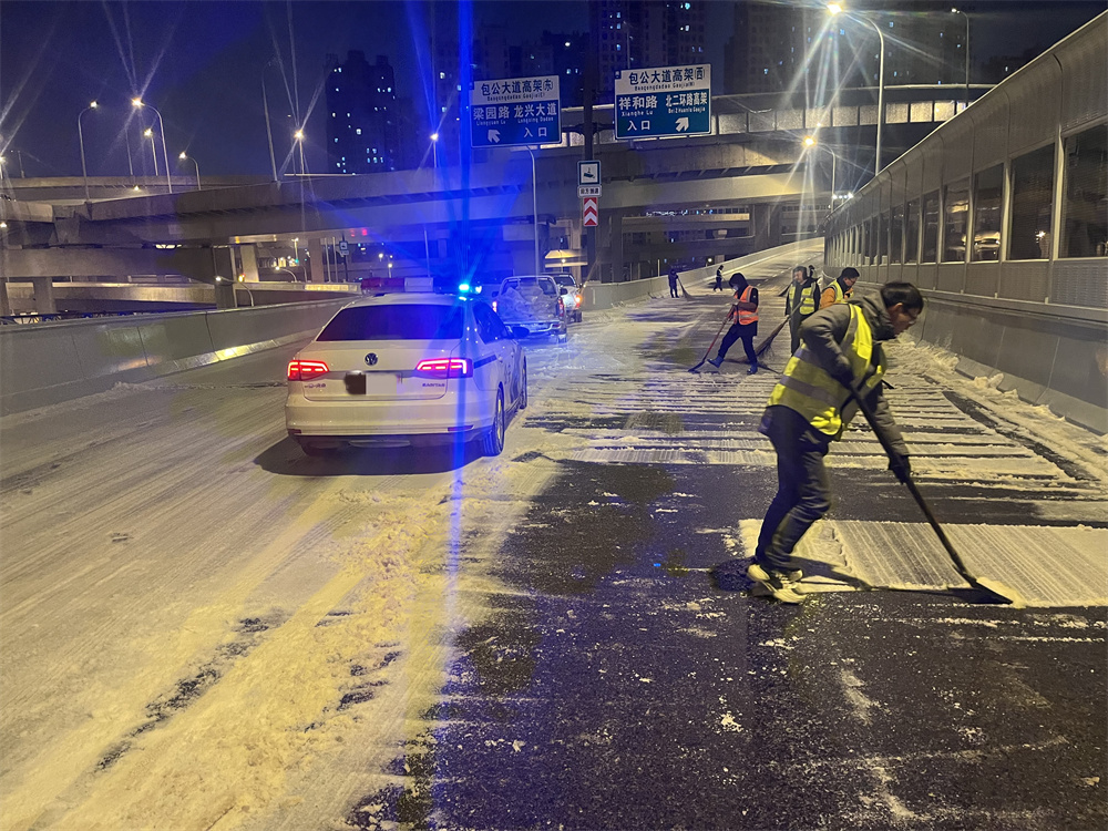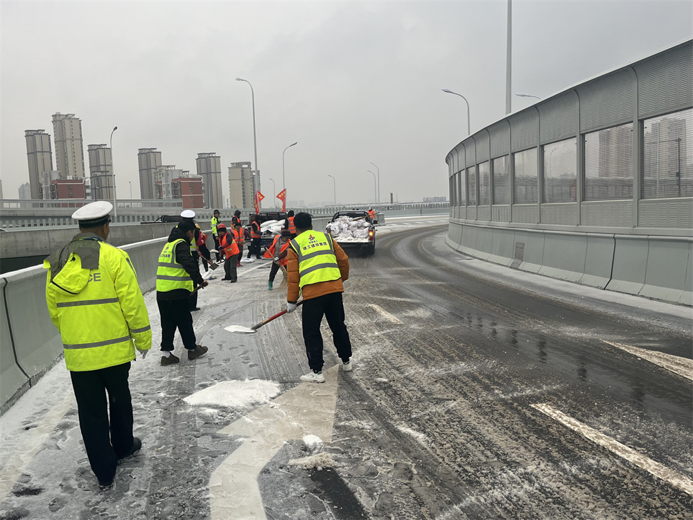2月23日早,金寨路高架橋綁寬項目迅速響應政府號召,組織10余名管理人員對金寨路地面輔道及高架上匝道開(kāi)展掃雪除冰工作。大家不畏嚴寒、分工明確、相互配合、揮鍬鏟雪,干得熱火朝天。經(jīng)過(guò)齊心協(xié)力的奮戰,冰凍的路面和積雪得到了及時(shí)清理,有效保證道路的安全通暢,減少出行安全隱患。