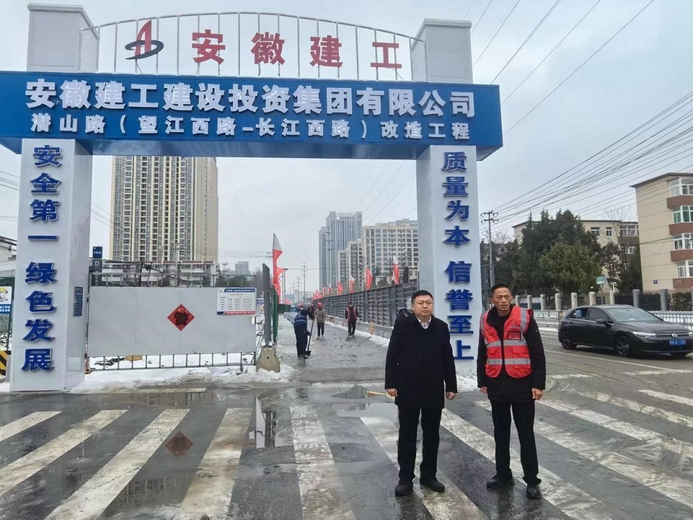 近日,合肥市遭遇低溫雨雪冰凍天氣,任杰深入項目施工現場(chǎng),實(shí)地查看掃雪除冰與安全文明施工情況,向大家致以節日的問(wèn)候和新春的祝福。