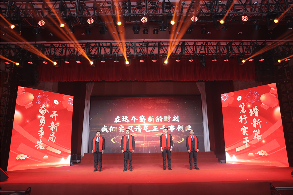 張沖首先代表公司黨委向一直以來(lái)關(guān)心支持公司改革發(fā)展的集團領(lǐng)導、廣大客戶(hù)以及社會(huì )各界朋友表示衷心感謝,向辛勤耕耘在各條戰線(xiàn)上的全體干部職工以及臺前幕后工作人員表示誠摯慰問(wèn)。他號召,公司上下認真貫徹落實(shí)集團三屆一次職代會(huì )暨2024年工作會(huì )議精神以及集團黨委決策部署,重整行裝二次創(chuàng )業(yè),凝心聚力攻堅克難,加快開(kāi)拓創(chuàng )新和轉型升級,全力打造新“千億建材”產(chǎn)業(yè),奮力推進(jìn)高質(zhì)量跨越式新發(fā)展,為集團轉型發(fā)展高質(zhì)量發(fā)展大發(fā)展貢獻新的更大力量。