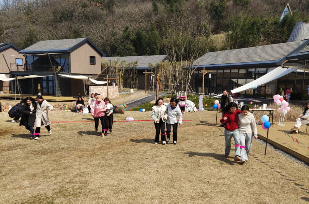 下午,女職工們來(lái)到位于安慶市宜秀區羅嶺鎮小龍山社區黑蛙46號,一個(gè)集主題文化體驗、濕地自然教育于一體的鄉村度假綜合體——樹(shù)蛙部落,開(kāi)展團建活動(dòng)?;顒?dòng)組織者精心布置了節日活動(dòng)背景,用相機記錄每名女職工與春天相約的美麗身影;隨后開(kāi)展的套圈、兩人三足等活動(dòng)既激發(fā)了女職工的活力,又增強了團隊協(xié)作能力,讓大家感受團隊的力量。