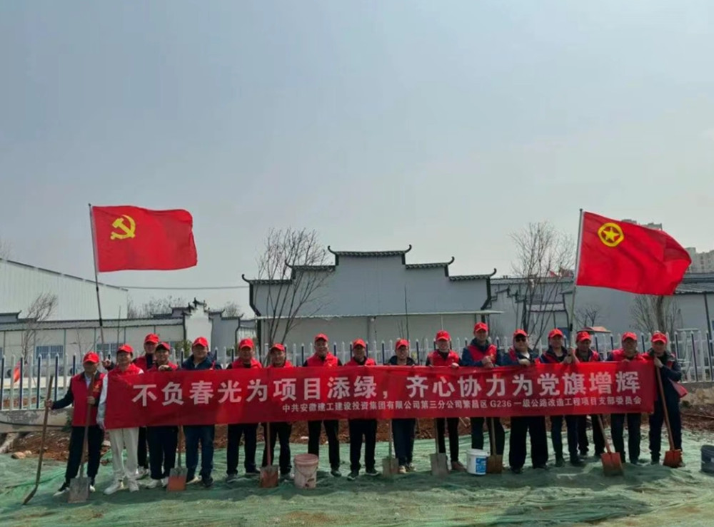 和煦春風(fēng)拂面來(lái),植樹(shù)添綠正當時(shí)。3月12日上午,繁昌區G236改造工程項目黨支部組織黨員、團員青年在項目部綜合場(chǎng)站開(kāi)展“不負春光為項目添綠 齊心協(xié)力為黨旗增輝”主題志愿植樹(shù)活動(dòng)。