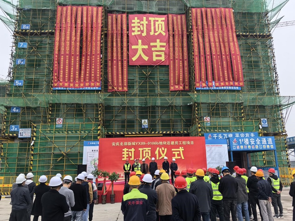 3月16日,由安徽建工投資建設的安慶EOD項目還建房子項16棟單體全部封頂,并在項目現場(chǎng)舉行封頂儀式,各參建單位有關(guān)負責人出席封頂儀式。