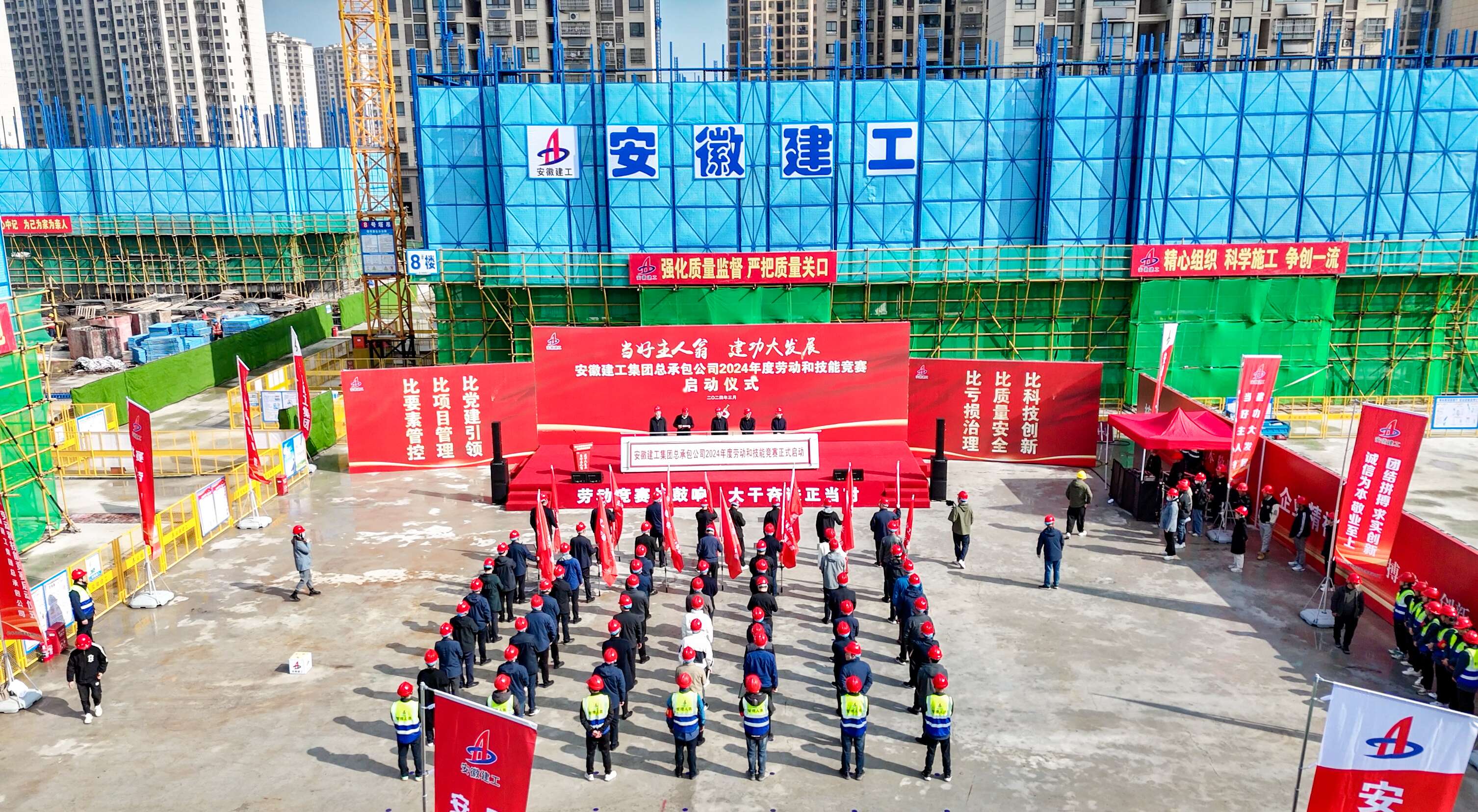 當好主人翁,建功大發(fā)展。3月26日上午,建工總承包在長(cháng)豐縣崗集鎮金明花園五期建設項目舉行2024年度勞動(dòng)和技能競賽啟動(dòng)儀式暨2023年度勞動(dòng)競賽總結會(huì ),團結動(dòng)員廣大干群改革創(chuàng )新、擔當作為,以豐碩勞動(dòng)成果推動(dòng)集團轉型發(fā)展、高質(zhì)量發(fā)展、大發(fā)展。公司黨委書(shū)記、總經(jīng)理傅宏林講話(huà)并宣布競賽啟動(dòng),公司黨委委員、副總經(jīng)理、工會(huì )主席王世標主持會(huì )議,公司在肥領(lǐng)導班子成員參加。