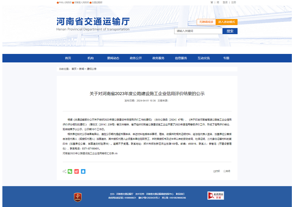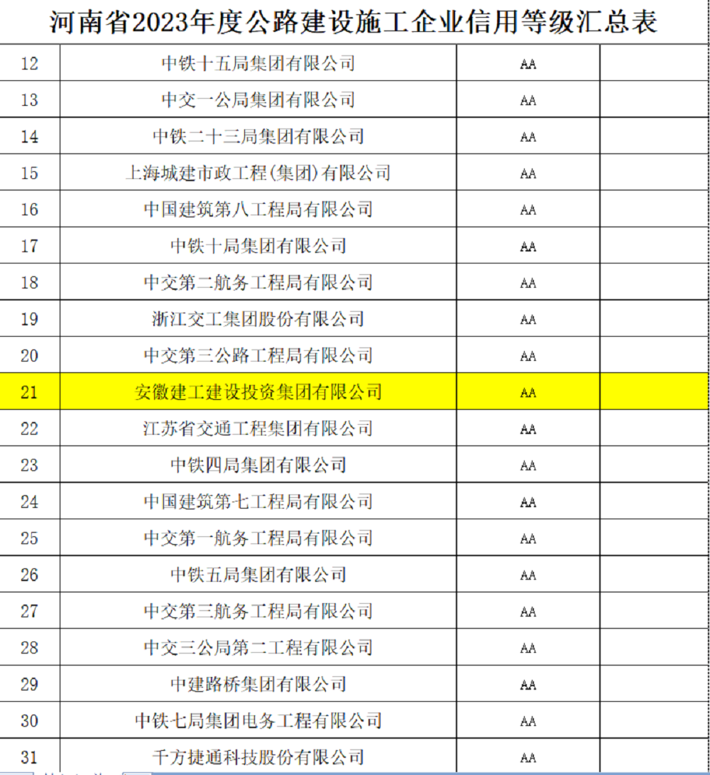 近日,河南省交通廳公布了2023年度公路建設施工企業(yè)信用評價(jià)結果,建工建投集團獲得了信用等級AA的殊榮。這一榮譽(yù)的獲得,不僅彰顯了公司在公路建設領(lǐng)域的卓越表現,也體現了項目部的信譽(yù)和專(zhuān)業(yè)實(shí)力。
