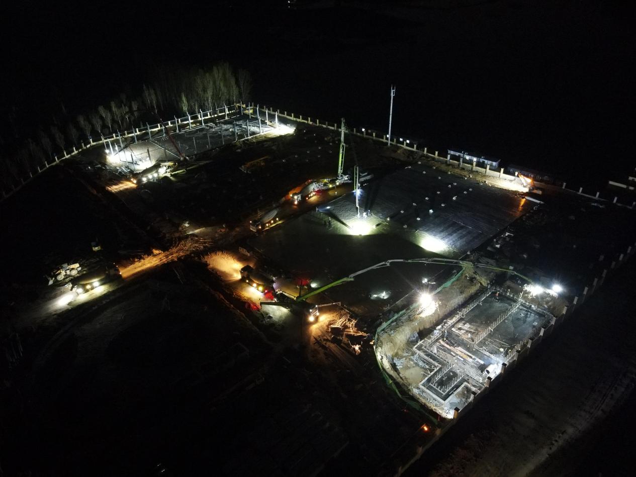 本次澆筑的兩座廠(chǎng)房地坪、一座消防水池筏板共計1040方混凝土,經(jīng)過(guò)14小時(shí)連續奮戰圓滿(mǎn)完成澆筑任務(wù)。作為項目至關(guān)重要的節點(diǎn)工程標志著(zhù)項目為全面轉入±0.000以上施工邁出關(guān)鍵一步。
