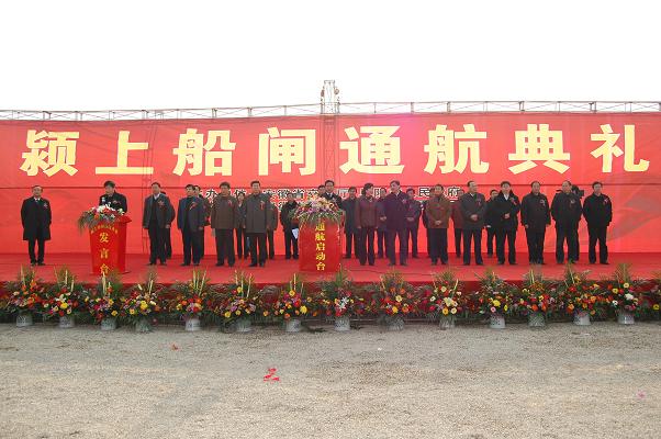 潁上船閘通航典禮由省交通廳副廳長(cháng)羅寧主持。省長(cháng)助理花建慧代表省政府向潁上船閘建成通航表示祝賀,她指出:潁上船閘建設是我省沙潁河復航的第一個(gè)工程,是全省“861計劃”重要項目,建設潁上船閘,開(kāi)辟阜陽(yáng)航運的第二條入淮通道,是沙潁河航運全線(xiàn)復航的迫切需要,對加快淮河航道網(wǎng)建設、完善區域綜合運輸體系、改善流域水環(huán)境、推進(jìn)國家高等級航道網(wǎng)建設、促進(jìn)豫皖合作,特別是皖北地區發(fā)展都是具有十分重要意義。省港航建設投資集團公司總經(jīng)理李家俊隨后詳細介紹了潁上船閘建設情況,他說(shuō):潁上船閘的勝利通航是在省委省政府的悉心關(guān)懷下、阜陽(yáng)市委市政府和阜陽(yáng)人民的大力支持下,經(jīng)過(guò)所有參建單位的近三年辛勤工作,今日終于勝利通航。潁上船閘建成通航既實(shí)現了沿淮群眾多年的夙愿,也為全面回復沙潁河航運開(kāi)了一個(gè)好頭,作為安徽省“兩干三支”水運主航道之一的沙潁河全線(xiàn)復航已是指日可待,將對地方經(jīng)濟的發(fā)展起到有力的促進(jìn)作用。最后,副省長(cháng)黃海嵩為穎上船閘通航啟動(dòng)通航按鈕!