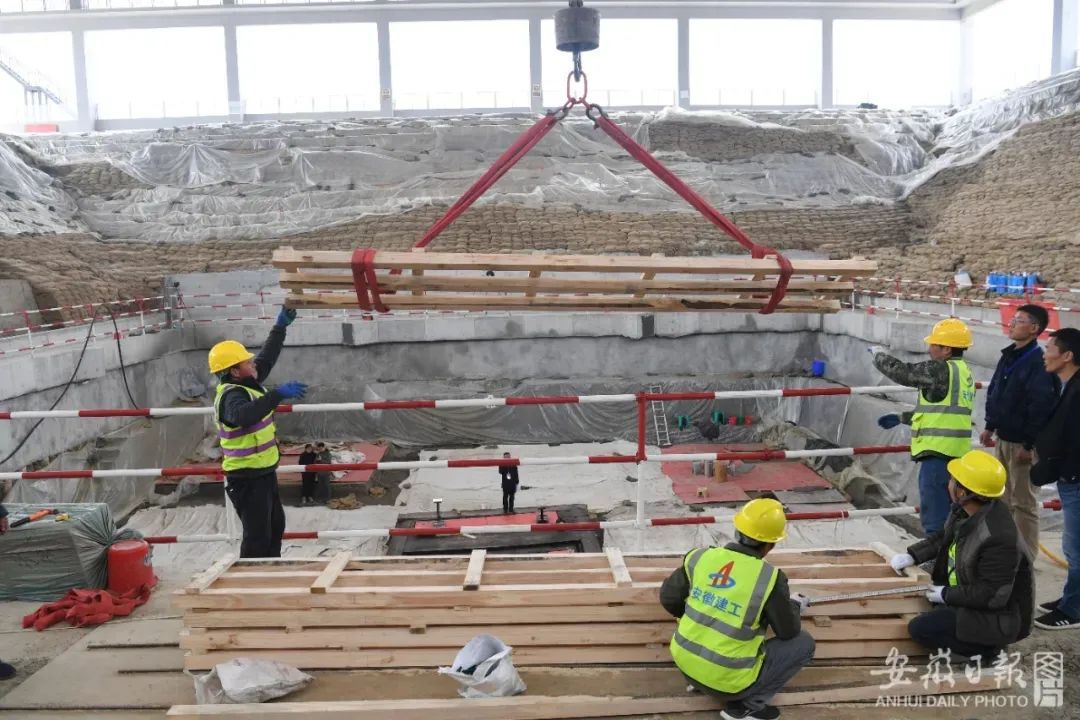 皖工徽匠,助力考古。安徽建工積極履行省屬?lài)筘熑螕?,還在發(fā)掘作業(yè)期間,從工程力學(xué)專(zhuān)業(yè)角度出發(fā),積極參與配合進(jìn)行槨室木板揭取、吊裝、保護、運輸等現場(chǎng)考古發(fā)掘,為推動(dòng)武王墩墓考古發(fā)掘、楚文化探索提供基礎建設保障。