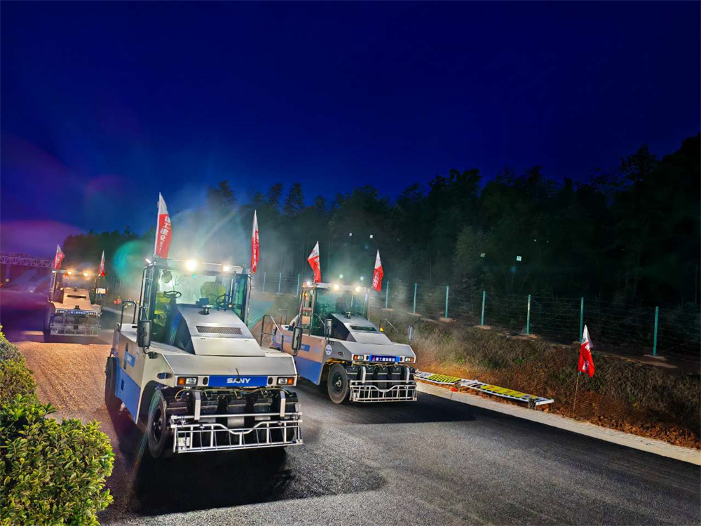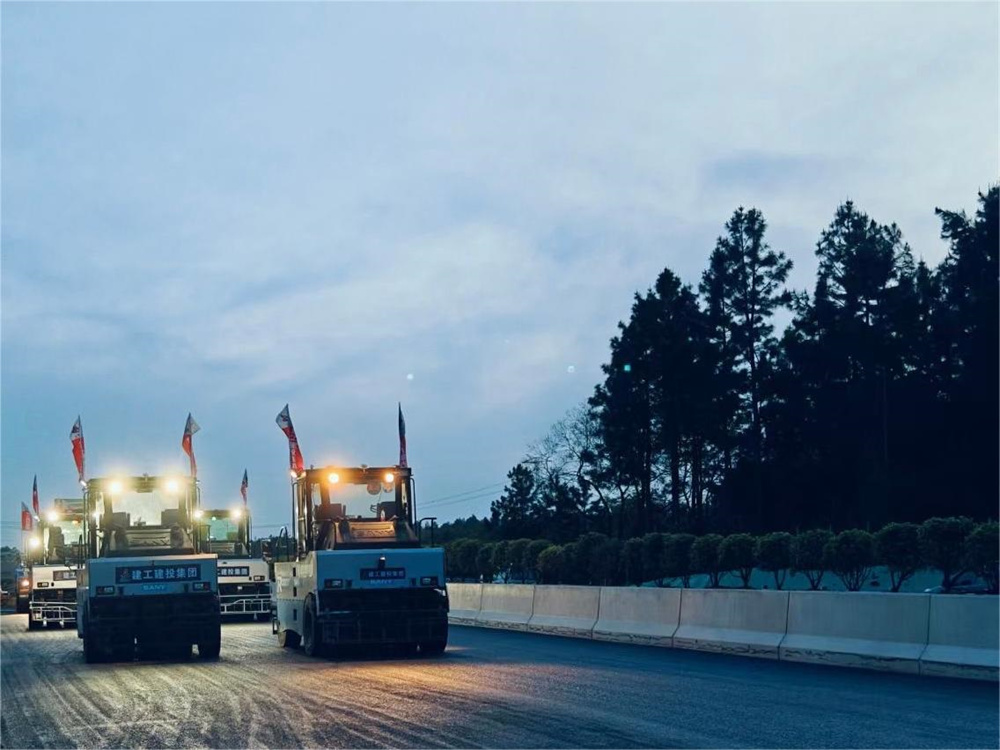 為確保無(wú)人攤壓瀝青下面層試驗段順利完成,項目部密切協(xié)調、機械設備、物資材料等關(guān)鍵生產(chǎn)要素,多次召開(kāi)施工部署會(huì )。在混合料的拌合、運輸、無(wú)人攤鋪、無(wú)人碾壓、檢測等各個(gè)關(guān)鍵工序上,多次進(jìn)行交底、培訓、分工,責任到人,保證試驗段在質(zhì)量及安全上得到可靠保證。在項目全體人員的共同努力下,試驗段在17點(diǎn)38分開(kāi)始攤鋪,歷經(jīng)3小時(shí)40分鐘,于21點(diǎn)18分碾壓結束,共施工710噸混合料,現場(chǎng)采用無(wú)人攤鋪機一臺,13噸無(wú)人雙鋼輪壓路機3臺,30噸無(wú)人膠輪壓路機4臺,運輸車(chē)11輛。