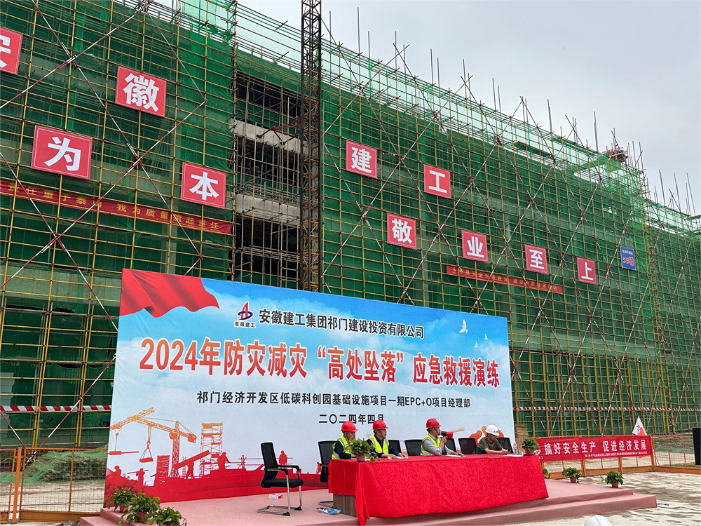 4月25日,祁門(mén)低碳科創(chuàng )園項目開(kāi)展“高處墜落”應急救援演練。