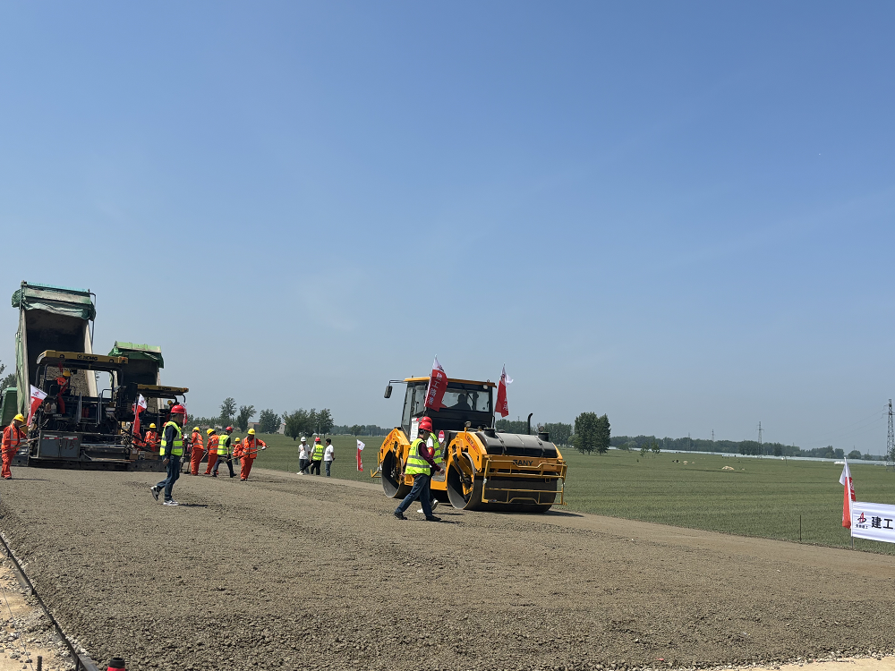 建工投資五一獻禮:徐淮阜高速宿州段路面一標水穩底基層試驗段順利完成攤鋪