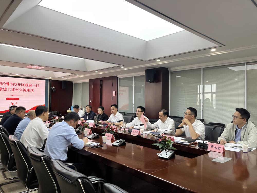 宿州市經(jīng)開(kāi)區管委會(huì )招商中心主任朱永卿,建工建材黨委委員、副總經(jīng)理李鑫及雙方相關(guān)部門(mén)人員參加。