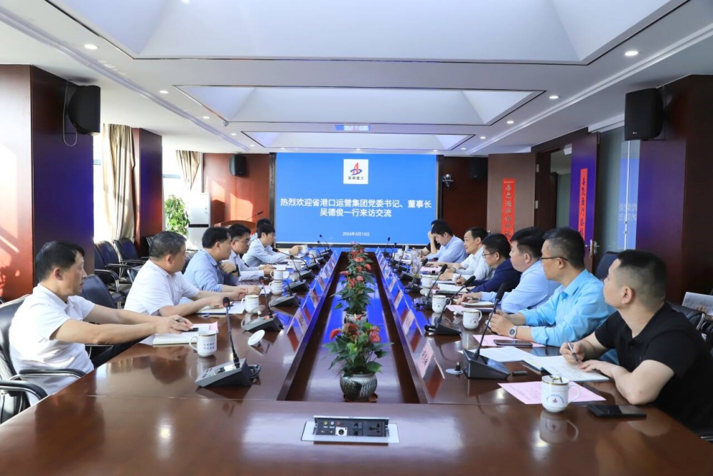 省港口運營(yíng)集團領(lǐng)導石冰,公司領(lǐng)導陶良敬、韓旭以及相關(guān)單位和部門(mén)負責人參加會(huì )談。