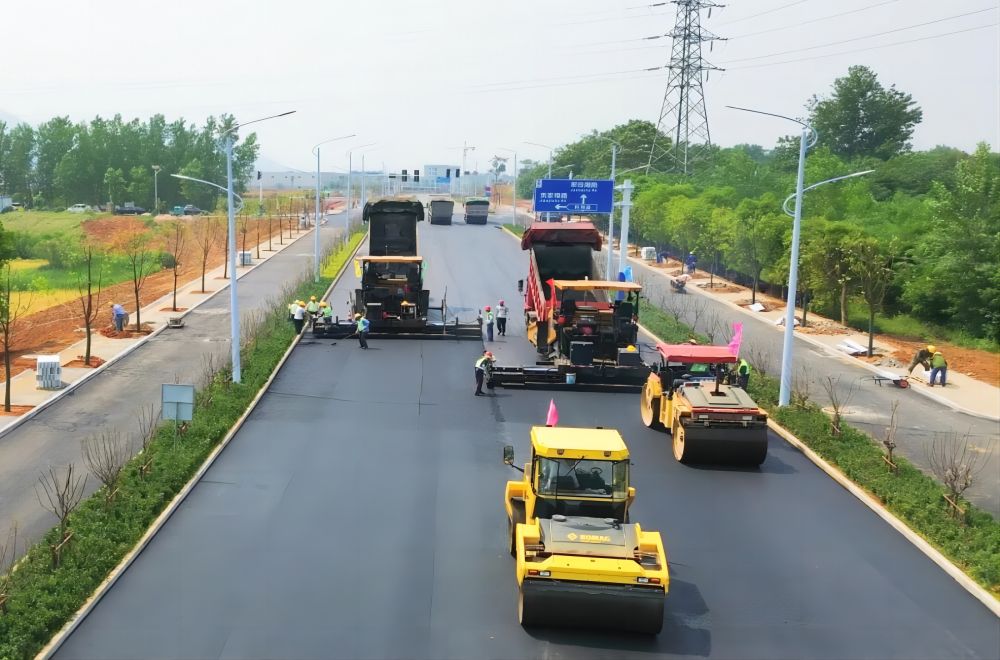 銅草花路主車(chē)道寬度15米,使用AC-13CSBS改性瀝青混凝土上面層施工,攤鋪長(cháng)度1288米、厚度4cm,攤鋪面積18570平方米。攤鋪前,項目部按照施工要求,研討瀝青施工方案,進(jìn)行技術(shù)安全交底,確保上面層攤鋪工藝流程、控制要點(diǎn)和標準施工注意事項落實(shí)到位。攤鋪中,現場(chǎng)配備2臺攤鋪機、3臺雙鋼輪壓路機、2臺雙膠輪壓路機、8輛運輸車(chē),施工人員緊密配合,混合料拌合、運輸、溫度、厚度、碾壓、檢測各環(huán)節有序銜接,路面一次攤鋪成形達到預期效果,較業(yè)主計劃工期提前45天。
