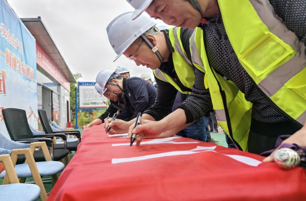 活動(dòng)中,大家在“人人講安全,個(gè)個(gè)會(huì )應急——暢通生命通道”安全生產(chǎn)月的主題橫幅上鄭重簽名并宣誓承諾,隨后參觀(guān)安全案例分析展板,以案促學(xué)、以案促改。大家紛紛表示,在今后的工作中,要以實(shí)際行動(dòng)嚴格履行崗位安全責任,增強安全意識,提高安全技能,全方位無(wú)死角及時(shí)排查整改安全隱患,確保安全生產(chǎn)形勢持續穩定,為項目生產(chǎn)提供堅實(shí)保障。