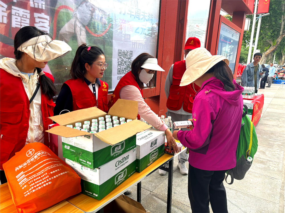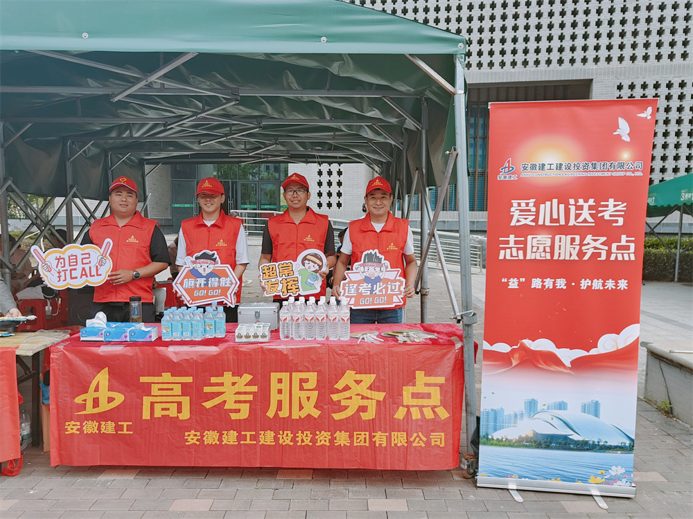 望江安建交通建設管理有限公司、望江安建安九公路建設有限公司在望江縣第三中學(xué)志愿點(diǎn)熱情地忙碌著(zhù),他們?yōu)榭忌鷾蕚淞说V泉水,在考點(diǎn)門(mén)口維持秩序、引導考生入場(chǎng),助力學(xué)子們安心應考。