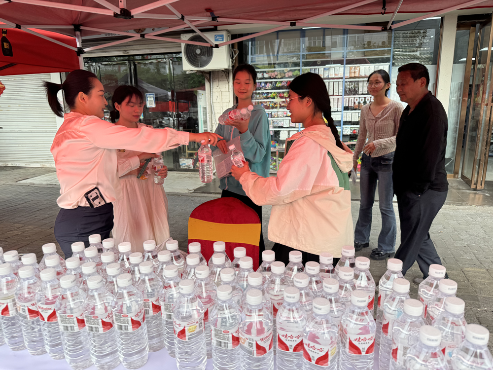 淮北項目的志愿服務(wù)小隊早早來(lái)到現場(chǎng),為考生和家長(cháng)免費提供飲用水、紙扇等。志愿者們用微笑和鼓勵,為考生們加油打氣,緩解他們的緊張情緒。