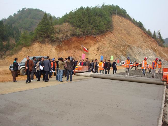 在施工現場(chǎng),該項目經(jīng)理呂慶廣重點(diǎn)向黃仁麟局長(cháng)一行介紹了混凝土面板施工過(guò)程中的質(zhì)量、安全注意事項。從原材料的采購,到拌和站配合比的控制;從現場(chǎng)攤鋪、振搗、抹光到后期養護;從保障施工人員人身安全到如何設置警示牌23以確保行人安全等進(jìn)行了逐一介紹,受到在場(chǎng)領(lǐng)導的一致好評。