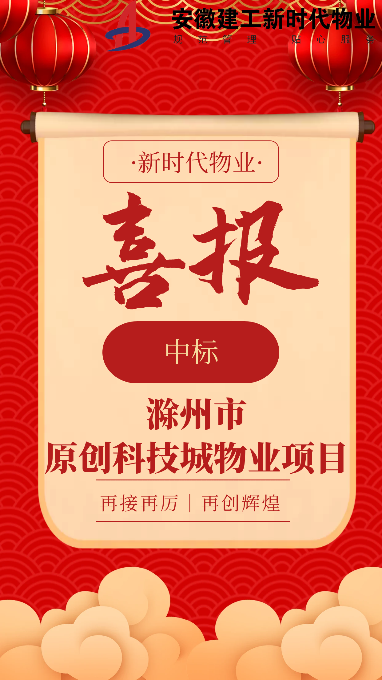 近日,物業(yè)公司成功中標滁州市原創(chuàng )科技城物業(yè)項目,中標金額為1369萬(wàn)元。該項目是公司今年首次中標集團外部產(chǎn)業(yè)園區物業(yè)項目。