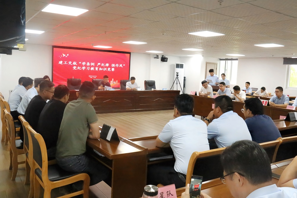 為深入推進(jìn)黨紀學(xué)習教育主題活動(dòng),教育引導黨員干部做到學(xué)紀、知紀、明紀、守紀,以競賽形式檢驗學(xué)習成果,6月19日,建工交航開(kāi)展“學(xué)條例 嚴紀律 強作風(fēng)”黨紀學(xué)習教育知識競賽。公司黨委副書(shū)記、總經(jīng)理李登祥出席活動(dòng),黨委委員、副總經(jīng)理、工會(huì )主席王黎明致辭。公司機關(guān)黨總支書(shū)記、財務(wù)資產(chǎn)部部長(cháng)李?lèi)?ài)平、紀檢室負責人李衍、團委書(shū)記李鳳祥及各代表隊領(lǐng)隊、隊員共計50余人參與此次活動(dòng)。