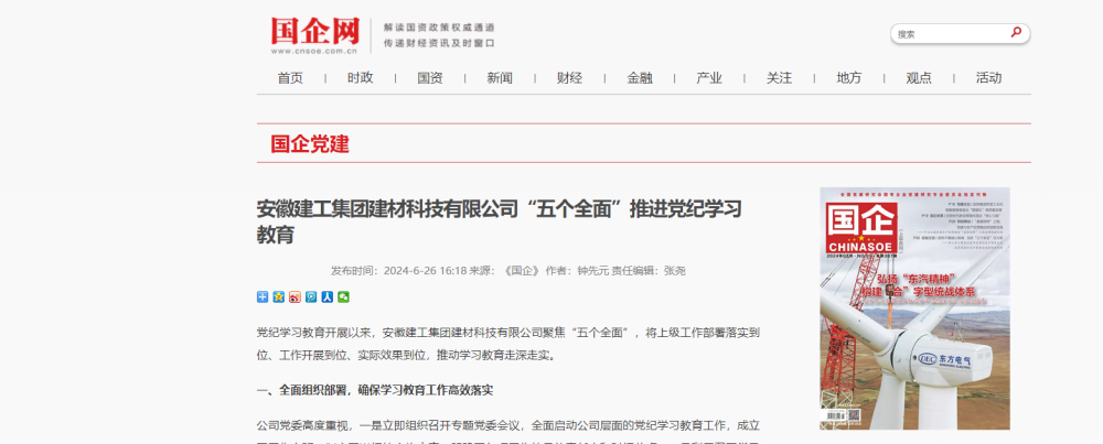 一段時(shí)間以來(lái),建工建材兩級黨組織,通過(guò)相繼舉辦黨紀學(xué)習教育讀書(shū)班結業(yè)式、專(zhuān)題學(xué)習習近平總書(shū)記關(guān)于全面加強黨的紀律建設的重要論述、講廉潔故事、過(guò)政治生日、上專(zhuān)題黨課等多種方式,扎實(shí)開(kāi)展黨紀學(xué)習教育工作,激發(fā)全體黨員干部學(xué)習積極性,推進(jìn)黨紀學(xué)習教育走深走實(shí),相關(guān)學(xué)習工作情況被國企網(wǎng)黨建頻道轉載。