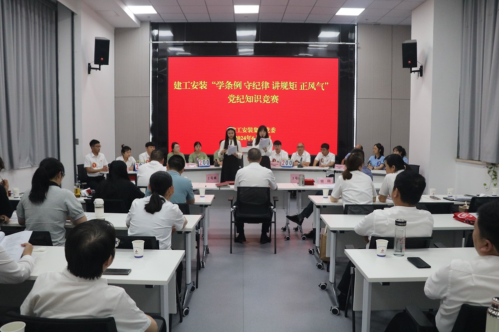 6月27日下午,建工安裝集團舉辦“學(xué)條例 守紀律 講規矩 正風(fēng)氣”黨紀知識競賽。公司黨委委員、紀委書(shū)記李楊,黨委委員、副總經(jīng)理董雙武,黨委委員、副總經(jīng)理樊剛出席活動(dòng),各黨支部書(shū)記、機關(guān)部門(mén)負責人以及參賽選手等40余人參加活動(dòng)。