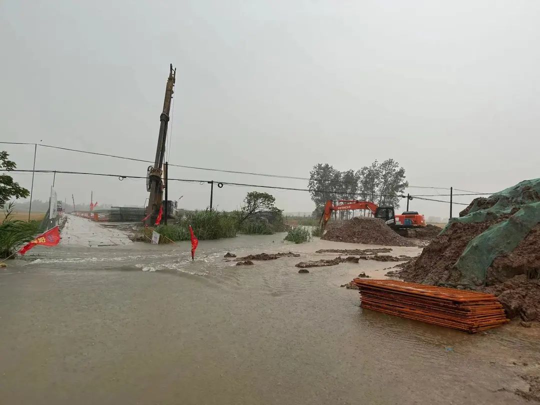 為確保人員生命及機械設備的安全,項目部組織拌和站、預制場(chǎng)及項目人員23人轉移至包合小學(xué)等安全場(chǎng)所住宿,施工機械、設備轉移至高處停放。同時(shí),項目班子輪流帶班24小時(shí)不間斷巡邏,巡查場(chǎng)站、江堤及駐地,排查隱患,組織黨員和共青團員對跨青弋江上的鋼便橋、便道、場(chǎng)站及駐地等場(chǎng)所進(jìn)行了全面排查,對易沖刷、坍塌的邊坡采取雨布覆蓋砂袋壓覆等防沖刷措施,確保了項目人員財產(chǎn)安全和工程的安全、順利實(shí)施。