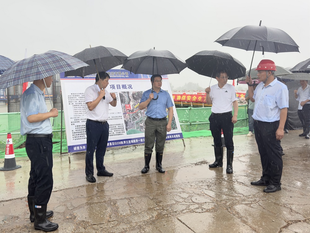 瞿輝深入項目黃滸河特大橋施工現場(chǎng),實(shí)地查看了現場(chǎng)防汛工作落實(shí)和工程進(jìn)度情況,詢(xún)問(wèn)項目征遷進(jìn)度,聽(tīng)取項目負責人關(guān)于防汛應急預案、應對措施和應急搶險物資準備情況的匯報,并對項目各項工作計劃安排給予充分肯定。