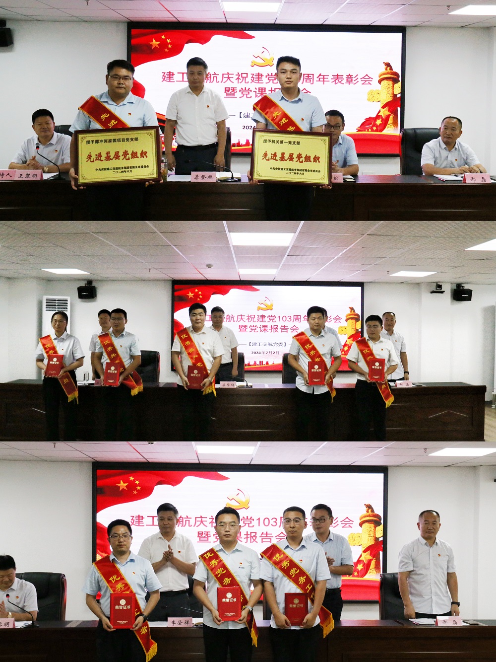 為慶祝中國共產(chǎn)黨成立103周年,深入推進(jìn)黨紀學(xué)習教育,充分發(fā)揮先進(jìn)典型表率示范作用,激勵廣大黨員干部主動(dòng)作為、銳意進(jìn)取、爭先創(chuàng )優(yōu),7月2日下午,建工交航黨委召開(kāi)慶祝建黨103周年表彰大會(huì )暨黨課報告會(huì )。會(huì )議由黨委委員、副總經(jīng)理、工會(huì )主席王黎明主持。