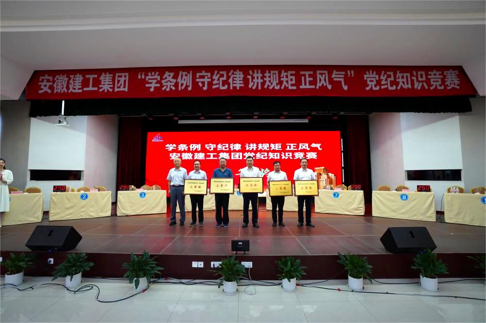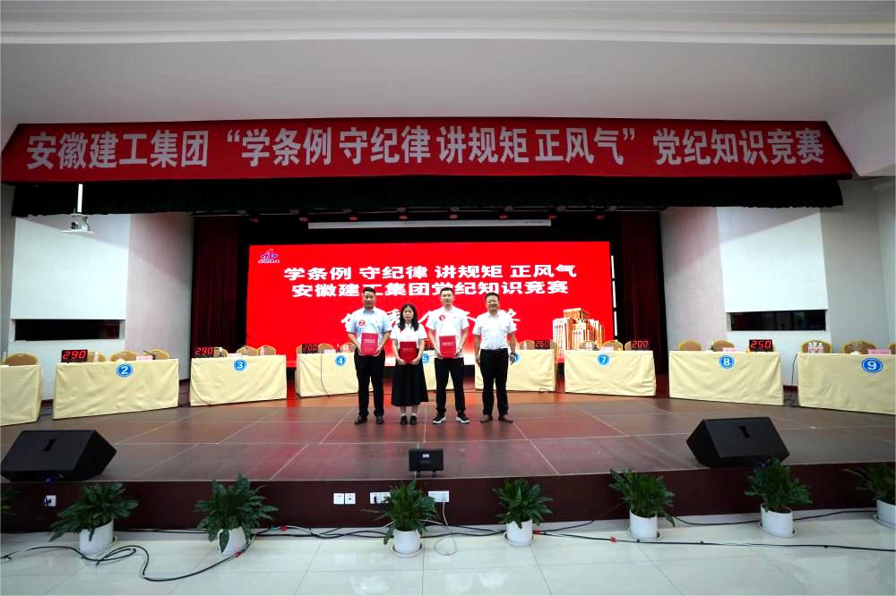 7月17日下午,由安徽建工集團黨委主辦,安徽建工建設投資集團黨委承辦的“學(xué)條例 守紀律 講規矩 正風(fēng)氣”黨紀知識競賽成功舉辦。由機關(guān)黨支部黨員譚園園、王弋、王燕三人組成的建工建材代表隊,在集團系統24支代表隊、72名選手中憑借過(guò)硬實(shí)力脫穎而出,最終斬獲三等獎,王燕同志榮獲優(yōu)秀個(gè)人獎。