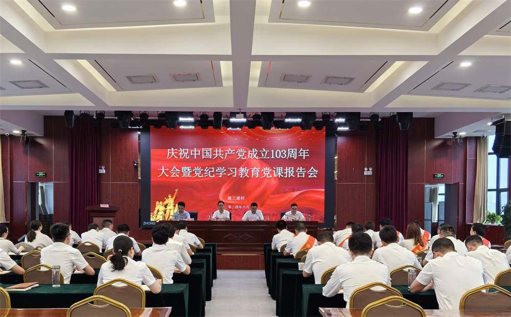 6月28日,建工建材召開(kāi)慶祝中國共產(chǎn)黨成立103周年大會(huì )暨黨紀學(xué)習教育黨課報告會(huì )。張俊圍繞會(huì )議主題,作題為《遵規守紀強黨性 嚴實(shí)作風(fēng)促發(fā)展 以嚴明紀律為公司高質(zhì)量發(fā)展保駕護航》的專(zhuān)題紀律黨課。會(huì )議表彰了2023年度優(yōu)秀黨務(wù)工作者、優(yōu)秀共產(chǎn)黨員、先進(jìn)基層黨組織,開(kāi)展警示教育。會(huì )議結束后,公司黨委成員分赴基層聯(lián)系點(diǎn)的單位,上專(zhuān)題黨課,開(kāi)展七一系列活動(dòng)。