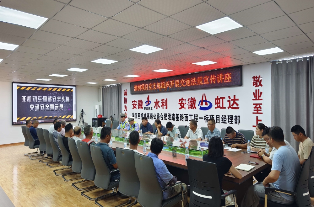 為切實(shí)做好施工道路交通安全管理工作,進(jìn)一步加強對項目部及施工班組駕駛人的宣傳警示力度,有效預防交通事故的發(fā)生,7月28日,安徽水利淮桐項目黨支部特邀合肥市公安局交警支隊經(jīng)開(kāi)區高劉中隊中隊長(cháng)徐磊同志在項目開(kāi)展警示教育活動(dòng)。