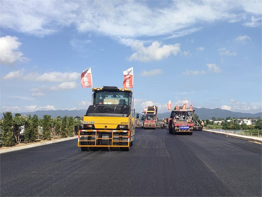 在G105、S237改建工程項目的施工現場(chǎng),機械聲陣陣轟鳴,正在進(jìn)行規?;癁r青中面層攤鋪,項目部對瀝青混合料的溫度、壓實(shí)度、厚度等各各項指標加強過(guò)程管理,保障施工安全和質(zhì)量。