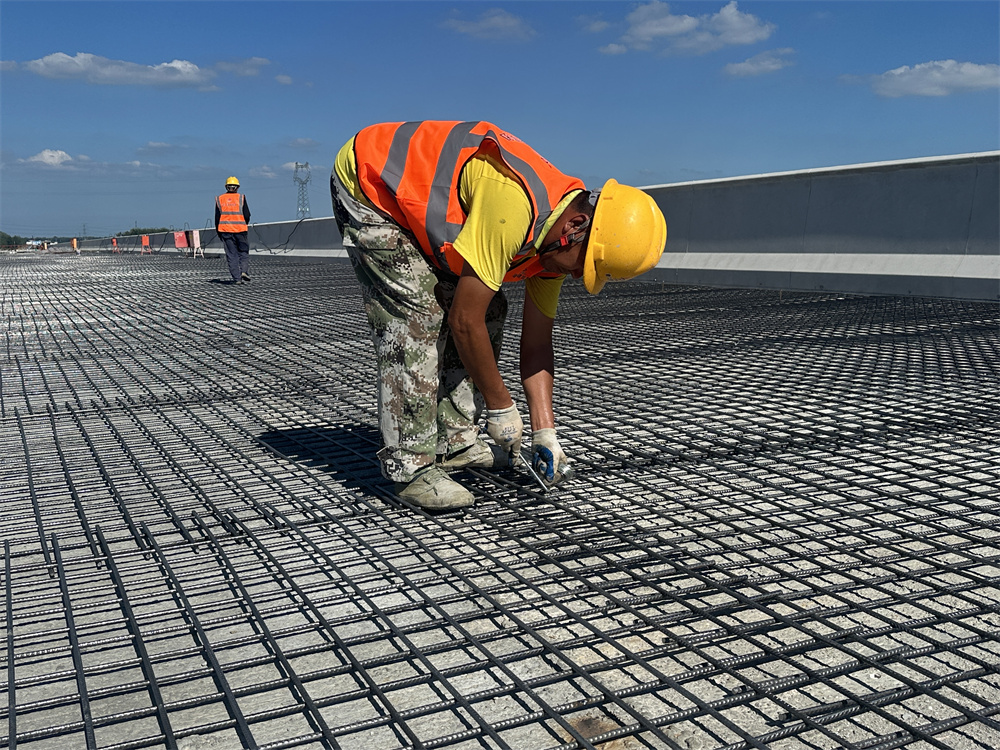 同樣烈日炎炎的五蒙高速05標項目施工現場(chǎng),工人們不懼“烤”驗,在各條戰線(xiàn)上克服天氣不利影響,以良好的精神狀態(tài)投入到工作中。他們心無(wú)旁騖,在刺眼的陽(yáng)光下和鋼筋水泥“較勁”,始終堅守在各自的工作崗位上,以?shī)^力拼搏的實(shí)際行動(dòng),戰高溫、斗酷暑、保安全、促生產(chǎn),保質(zhì)保量完成下發(fā)的施工節點(diǎn)任務(wù)。