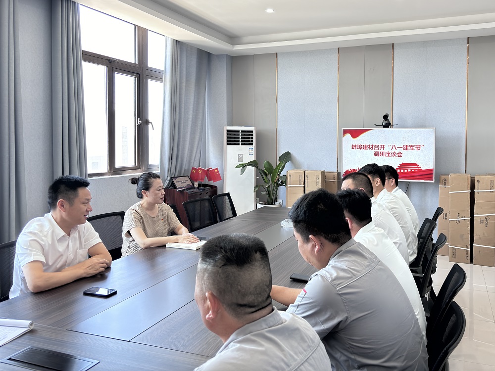 7月31日上午,蚌埠建材召開(kāi)“八一”建軍節調研座談會(huì ),退役軍人暢所欲言,分享在部隊、生活中的經(jīng)歷、汗水和喜悅,暢談工作的經(jīng)驗。