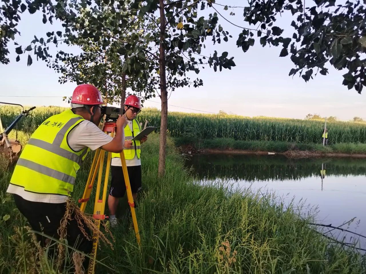 高程復測期間,戶(hù)外作業(yè)面臨嚴峻“烤”驗。在jm6-jm8段,遇到高差超過(guò)10米的土壩,測量員們采用“之”字形路線(xiàn)將高程傳遞到坡頂的jm7控制點(diǎn)。在老路改造段,測量員們身穿反光背心,順著(zhù)老路硬路肩,及時(shí)快速調整儀器,讀數人員見(jiàn)縫讀數、多重復核,最終確保了數據的準確性,圓滿(mǎn)完成了測量任務(wù)。