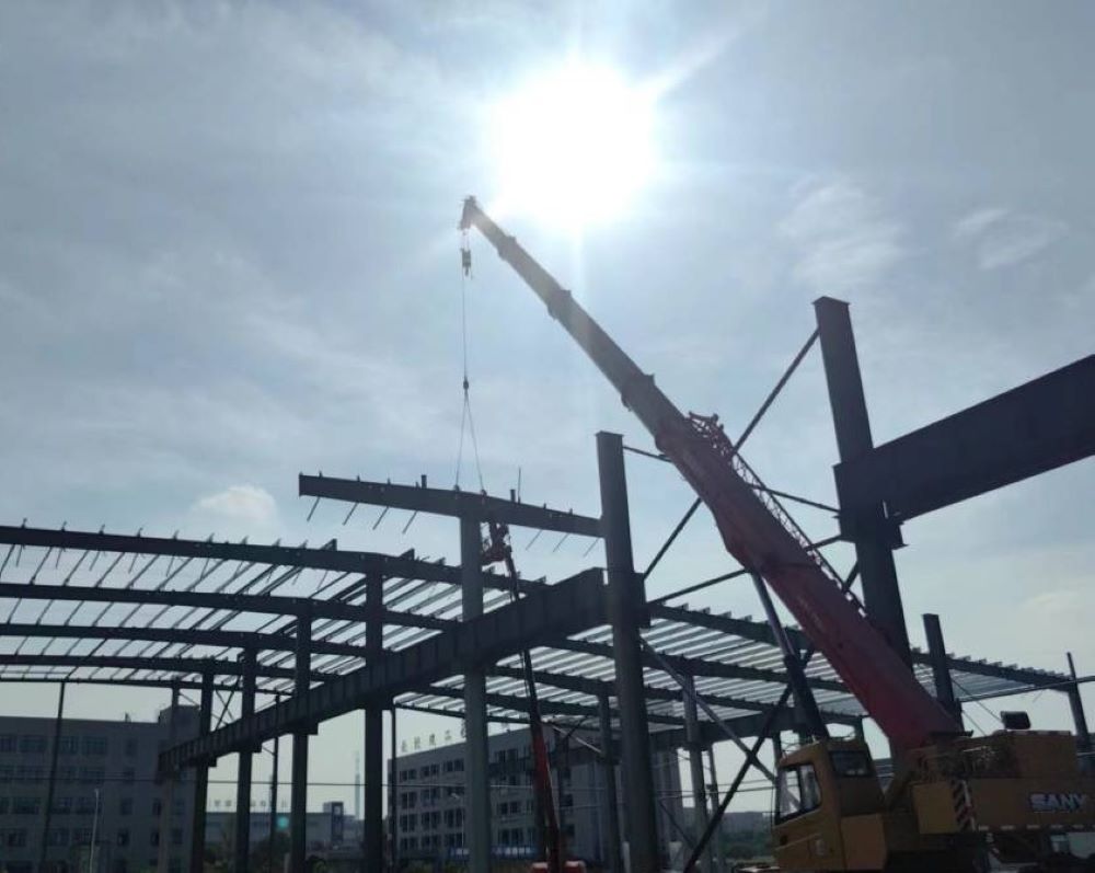 目前1-18軸鋼柱已全部安裝完成,1-6軸柱撐、鋼梁、屋面檁條已安裝結束。同時(shí)應對持續高溫天氣,項目部合理安排作業(yè)時(shí)間,施工人員分工協(xié)作,錨定節點(diǎn)目標,全力以赴趕工期、搶進(jìn)度。預計9月底完成建工鋼構智能制造基地4#廠(chǎng)房項目全部工程量。