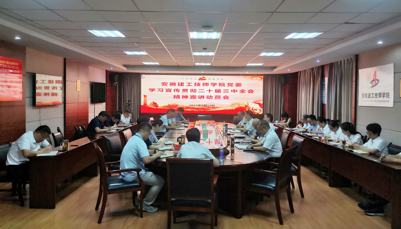 會(huì )議重點(diǎn)宣貫集團黨委學(xué)習貫徹黨的二十屆三中全會(huì )精神宣講報告會(huì )精神;傳達《安徽建工技師學(xué)院黨委關(guān)于認真學(xué)習貫徹黨的二十屆三中全會(huì )精神的通知》《安徽建工技師學(xué)院黨委學(xué)習貫徹黨的二十屆三中全會(huì )精神宣講工作方案》文件要求。