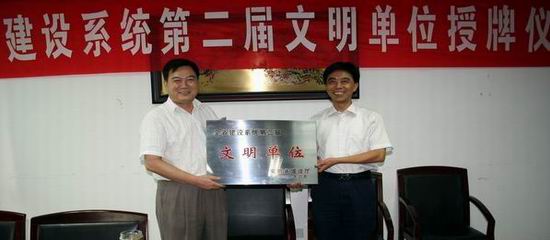 日前,在全省建設系統兩年一屆的文明單位評選活動(dòng)中,省路橋集團從2萬(wàn)多家申報單位中脫穎而出,榮獲“全省建設系統第二屆文明單位”光榮稱(chēng)號,這也是全省建筑類(lèi)企業(yè)唯一獲此殊榮的單位。7月14日下午,省建設廳文明辦領(lǐng)導、建工集團黨委工作部吳曉伍主任、機關(guān)黨委宋曉英書(shū)記等冒著(zhù)酷暑,親臨該公司進(jìn)行授牌。省路橋集團董事長(cháng)、總經(jīng)理童宗勝,黨委書(shū)記、副董事長(cháng)吳銳智,副總經(jīng)理、工會(huì )主席朱曉奎及相關(guān)部門(mén)負責人參加了授牌儀式。