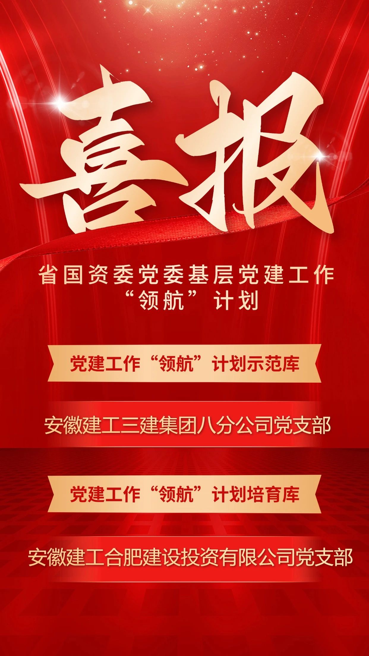 近日,省國資委黨委通報2024年第三季度基層黨建工作“領(lǐng)航”計劃入庫情況,安徽建工三建集團八分公司黨支部和安徽建工合肥建設投資有限公司黨支部分別入選省國資委黨委基層黨建工作“領(lǐng)航”計劃示范庫和培育庫。至此,安徽建工集團共有4個(gè)基層黨組織入選省國資委黨委示范庫,1個(gè)基層黨組織入選省國資委黨委培育庫。