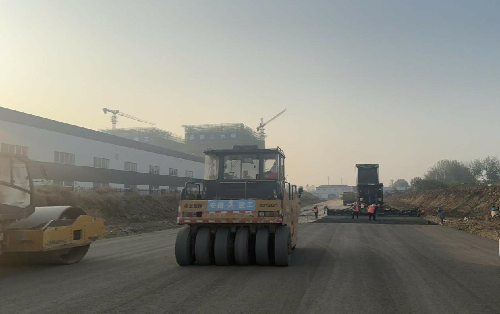 安徽水利臨港產(chǎn)業(yè)園項目龍錦路路面水穩基層全線(xiàn)貫通