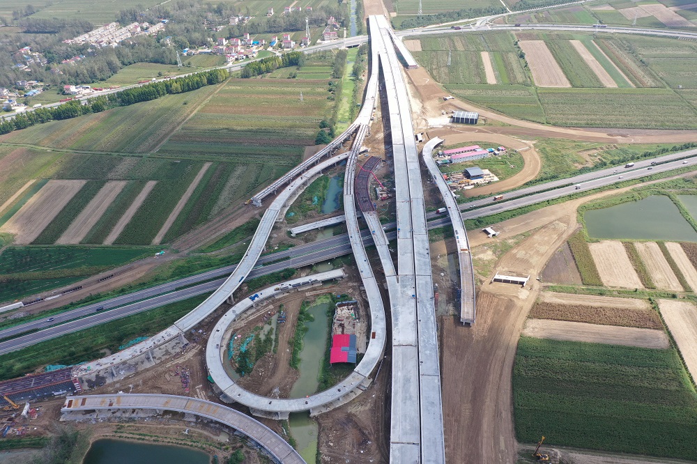 五蒙高速包集樞紐位于蚌埠市懷遠縣包集鎮,設計通過(guò)包集樞紐與京臺高速之間實(shí)現交通轉換。作為本標段的控制性工程,包集樞紐支架現澆箱梁工程量大,現澆梁共計23聯(lián),設計澆筑混凝土方量19503m3,其中4聯(lián)現澆梁橫跨北清溝河,6聯(lián)現澆梁位于溝塘內。樞紐施工現場(chǎng)環(huán)境復雜,施工難度大、安全風(fēng)險高,包含主線(xiàn)特大橋2座,全長(cháng)1236m;匝道橋8座,全長(cháng)4121m,主線(xiàn)橋A、B、C、D匝道橋均上跨京臺高速。