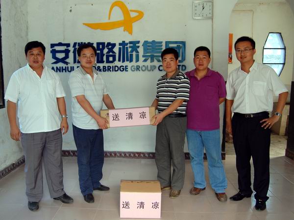 烈日當空,酷熱炎炎。為給各正值高溫大干時(shí)節的項目職工送去絲絲清涼,將公司領(lǐng)導的款款深情送到基層,把對一線(xiàn)職工安全健康的關(guān)愛(ài)送到職工的心坎上,7月20~24日,省路橋集團副總經(jīng)理、工會(huì )主席朱曉奎率工會(huì )、辦公室有關(guān)人員分別看望慰問(wèn)了公司部分在建項目——績(jì)黃高速01標、黃祁高速05標、G205湯潛段、S322桃甘段項目部的一線(xiàn)職工,并給他們帶去花露水、清涼油和精致水杯等防暑降溫物品。