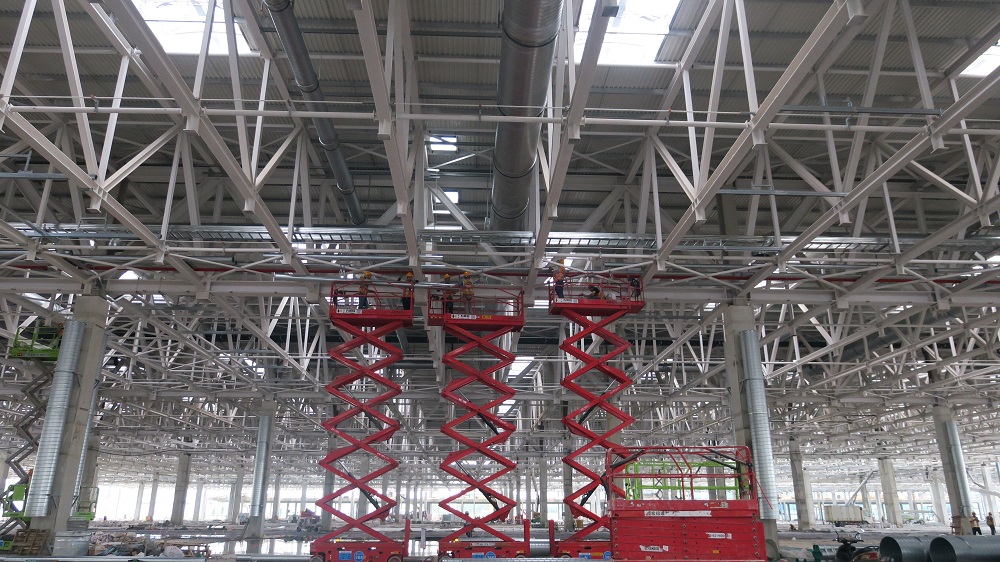 在建工安裝合肥經(jīng)開(kāi)區臨湖智能制造產(chǎn)業(yè)園項目現場(chǎng),項目部管理人員及水電班組、通風(fēng)班組、消防班組、虹吸雨水班組施工人員夜以繼日加班加點(diǎn)搶抓進(jìn)度。30名項目管理人員,226名施工人員,96輛登高機械,采取“白加黑” 、“5+2”模式施工作業(yè),確保各區域各專(zhuān)業(yè)施工生產(chǎn)穩步推進(jìn)。 目前正在進(jìn)行車(chē)間一通風(fēng)系統、雨水系統、消防系統,壓縮空氣與循環(huán)水系統等安裝作業(yè),站房一同步開(kāi)展管線(xiàn)預埋與預制工作。本周已完成車(chē)間一風(fēng)管安裝約4200平方米,雨水管道安裝約1100米,消防管道安裝約590米,橋架安裝約600米。