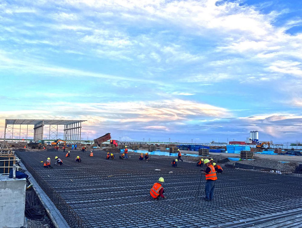 走進(jìn)青海鹽湖項目施工現場(chǎng),建設者們堅守施工一線(xiàn),正有條不紊地忙碌著(zhù),進(jìn)行鋼筋綁扎、模板安裝、混凝土澆筑、鋼結構安裝……連日來(lái),項目開(kāi)啟“白加黑”工作模式,白天機械轟鳴,晚上挑燈夜戰,全體參建人員鉚足干勁、齊心協(xié)力,為工程項目快速推進(jìn)保駕護航。