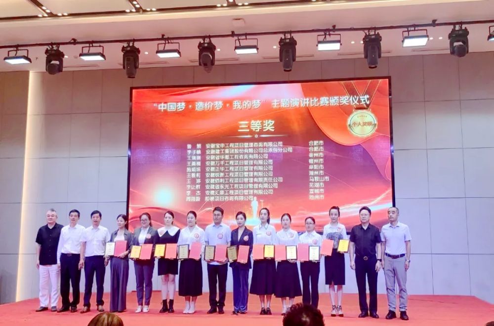 近日,由安徽省建設工程造價(jià)管理協(xié)會(huì )主辦、各市造價(jià)協(xié)會(huì )協(xié)辦的“中國夢(mèng)·造價(jià)夢(mèng)·我的夢(mèng)”主題演講比賽在合肥舉行,合肥建投(合肥公司)李子穗、第四公司宋靜宇同來(lái)自16個(gè)地市的200余個(gè)參賽選手同臺競技、脫穎而出,喜獲三等獎和優(yōu)秀獎。