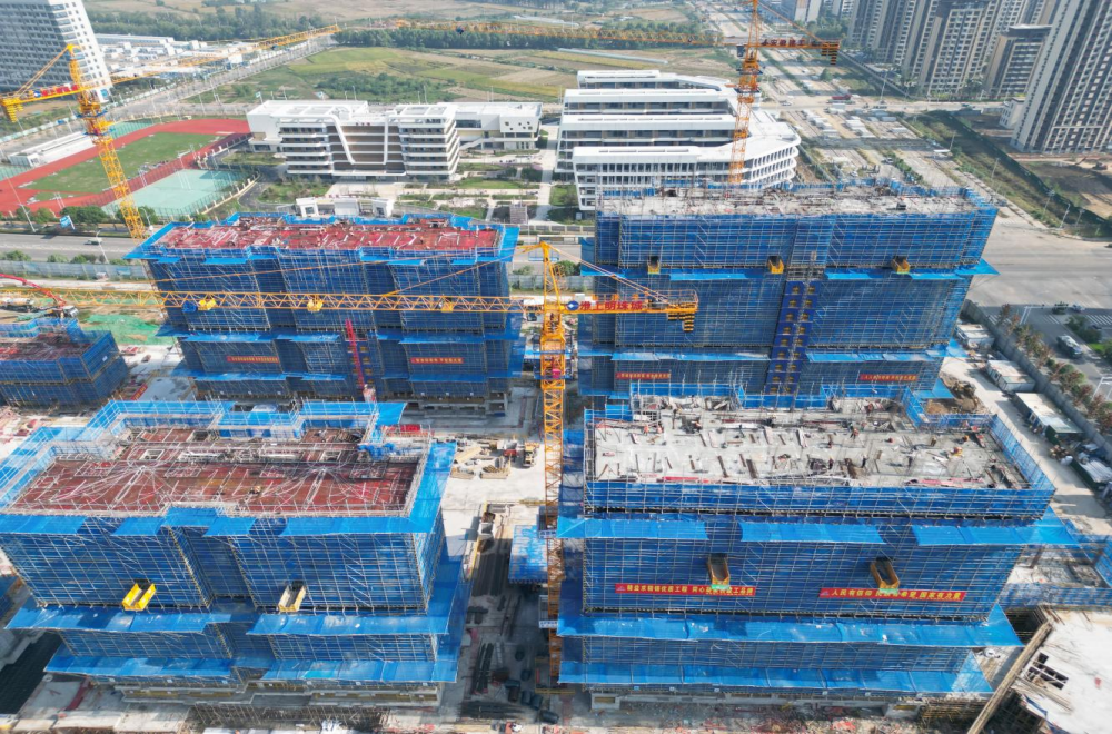 州來(lái)地產(chǎn)三號地塊項目近400名建設者國慶期間堅守崗位,全力推進(jìn)項目建設,首批4棟高層(25-26F)住宅主體結構已完成70%,預計11月底將迎來(lái)首批次全面主體結構封頂。目前已做好分批次結構分部工程驗收準備,全力沖刺分批次外墻裝飾裝修施工目標,后批次5棟高層(25-26F)住宅主體結構已完成12%,其中一棟樓棟主體結構施工至八層,兩棟樓棟出正負零。