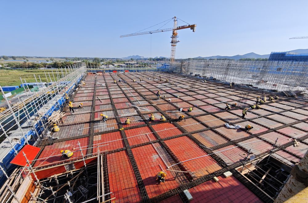 零碳智慧快遞電商集散中心一期項目,國慶期間近120名建設者堅守崗位,完成1100方主體混凝土澆筑、200噸鋼筋綁扎、150米消防管道安裝工作。截止目前,一層砌體完成80%,AB區主體已澆筑完成,進(jìn)入鋼結構安裝施工階段。