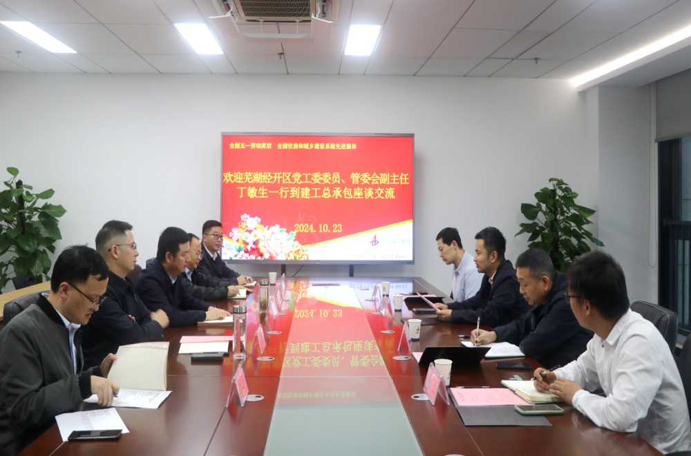 10月23日下午,蕪湖經(jīng)開(kāi)區黨工委委員、管委會(huì )副主任丁敏生一行到訪(fǎng)建工總承包,公司黨委書(shū)記、總經(jīng)理傅宏林熱情接待,并舉行工作會(huì )談。