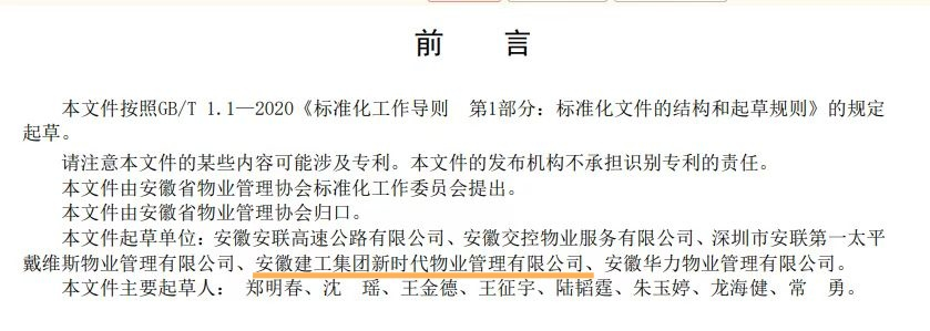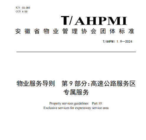 10月28日,由安徽建工集團新時(shí)代物業(yè)管理有限公司參編的《安徽省物業(yè)管理協(xié)會(huì )團體標準》中《物業(yè)服務(wù)導則 第9部分:高速公路服務(wù)區專(zhuān)屬服務(wù)》正式發(fā)布。