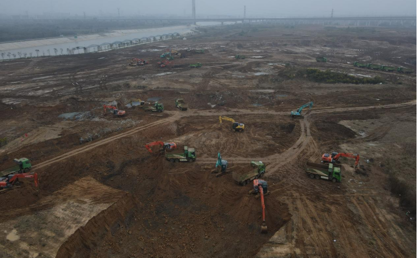 自開(kāi)工以來(lái),項目部共組織150臺挖掘機、180臺自卸車(chē)和160臺推土機在5669畝施工范圍內24小時(shí)同時(shí)作業(yè)。目前已完成土方平整563萬(wàn)m3,占土方總量的79%。渠道、路基及田埂等工程也已陸續開(kāi)始施工。